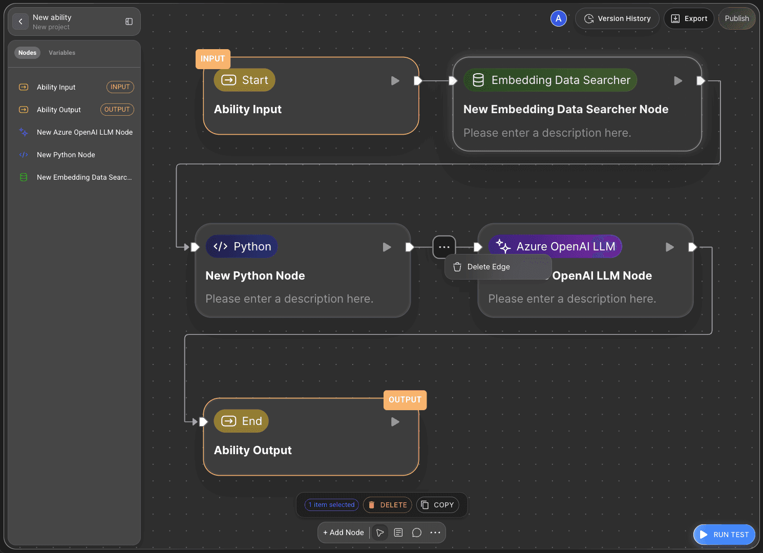어빌리티 테스트(Ability Test) : 순차 실행 방식으로 각 노드의 입력과 출력 결과를 단계별로 확인할 수 있어 기능 단위의 검증과 디버깅(Debugging)이 용이합니다.