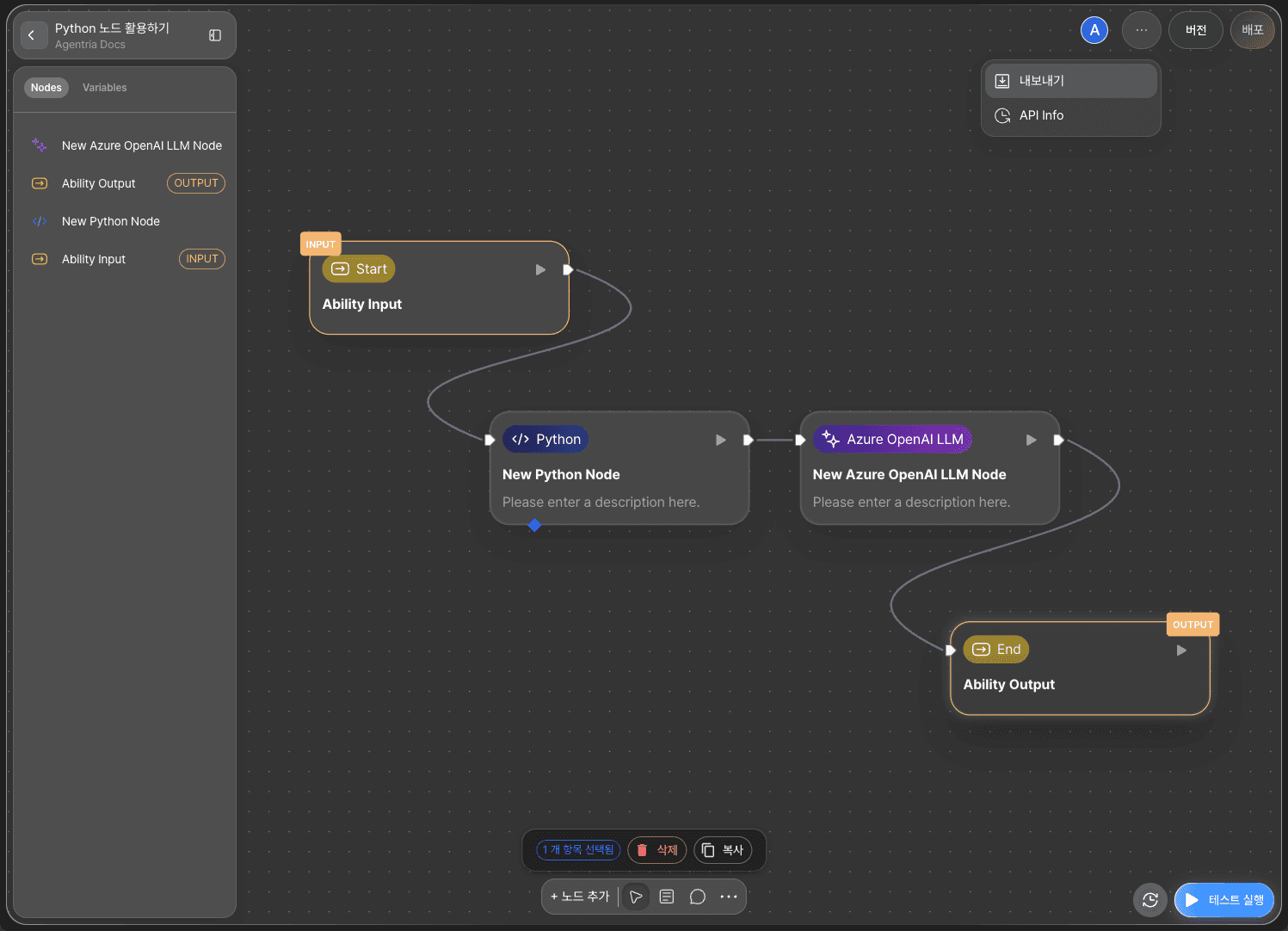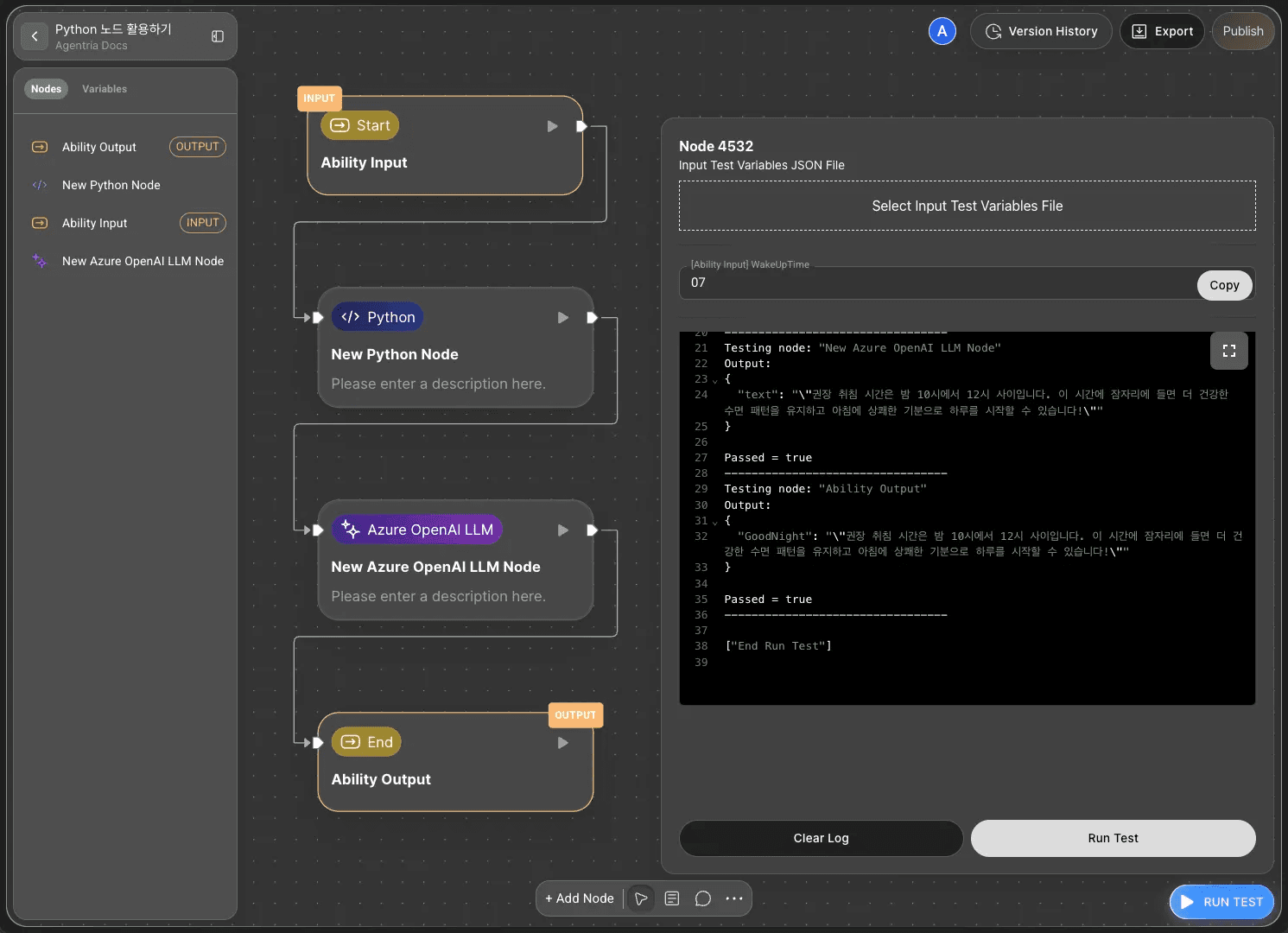 RUN TESTat the bottom right of the canvas and then clickingRun Test.For details, refer to the Ability Test page.