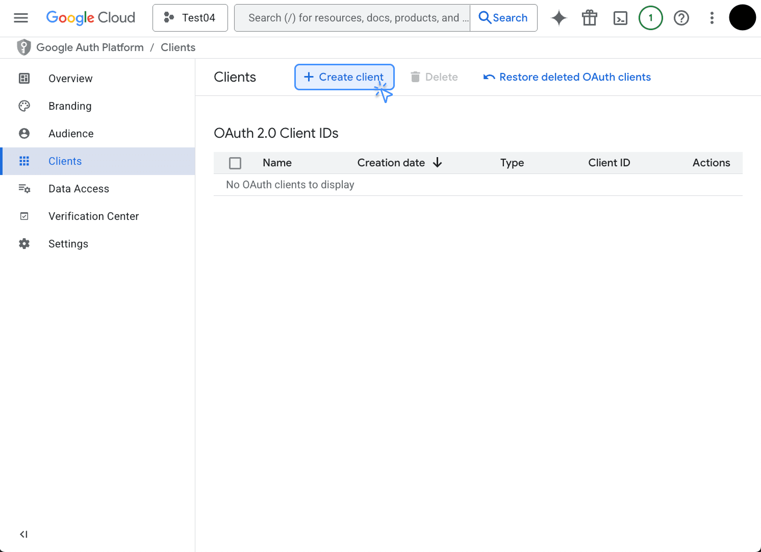 Alternatively, you can go to the Clints tab and click +Create Client to follow the same process.