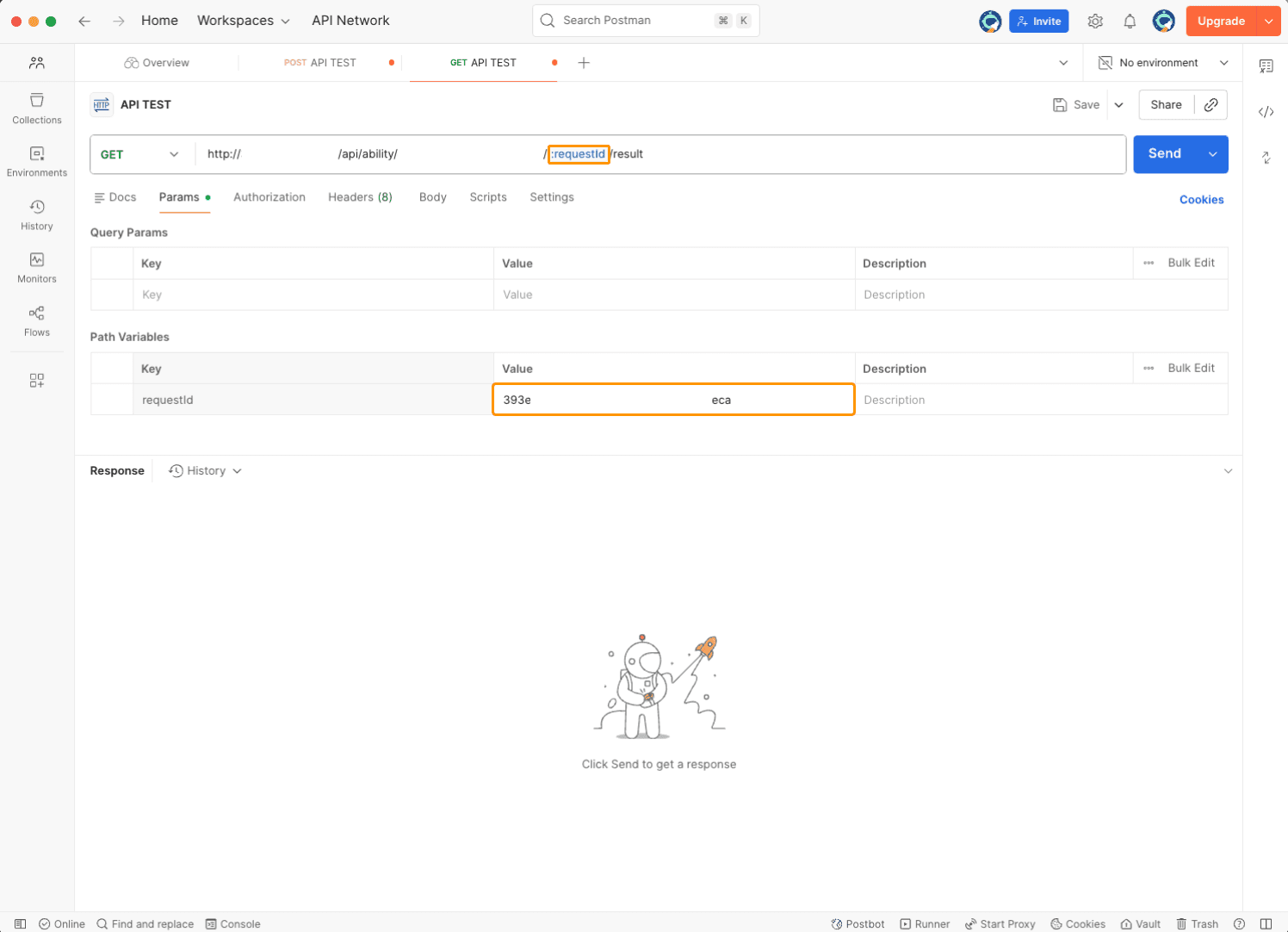 Then append the Request ID you got from the POST request to the end of the URL in the following format: