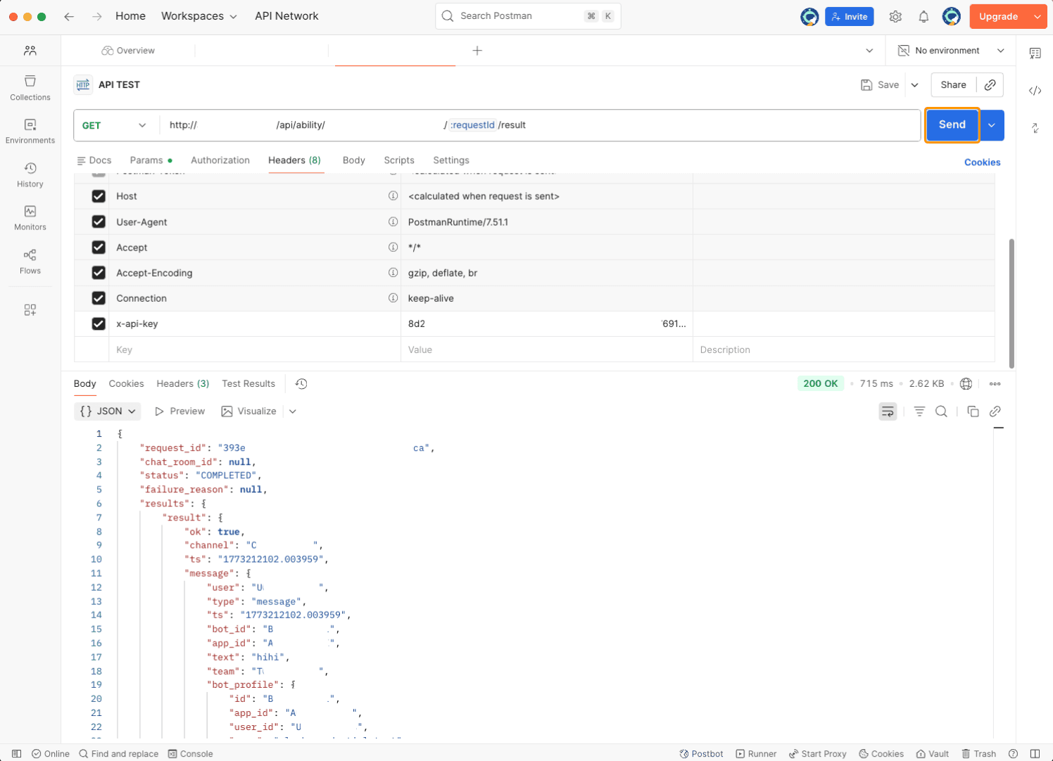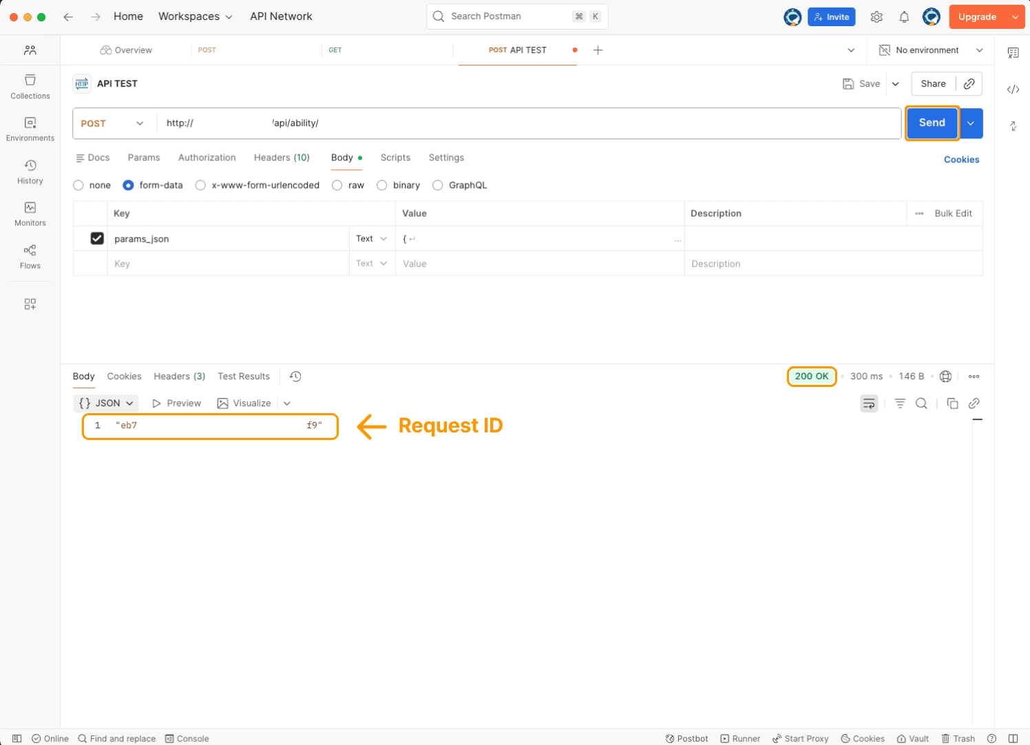 Then click Send. You’ll see a Request ID in the response.