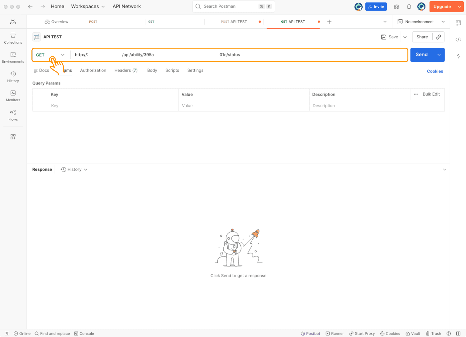 Set the method to GET and enter the same endpoint URL as the POST request.