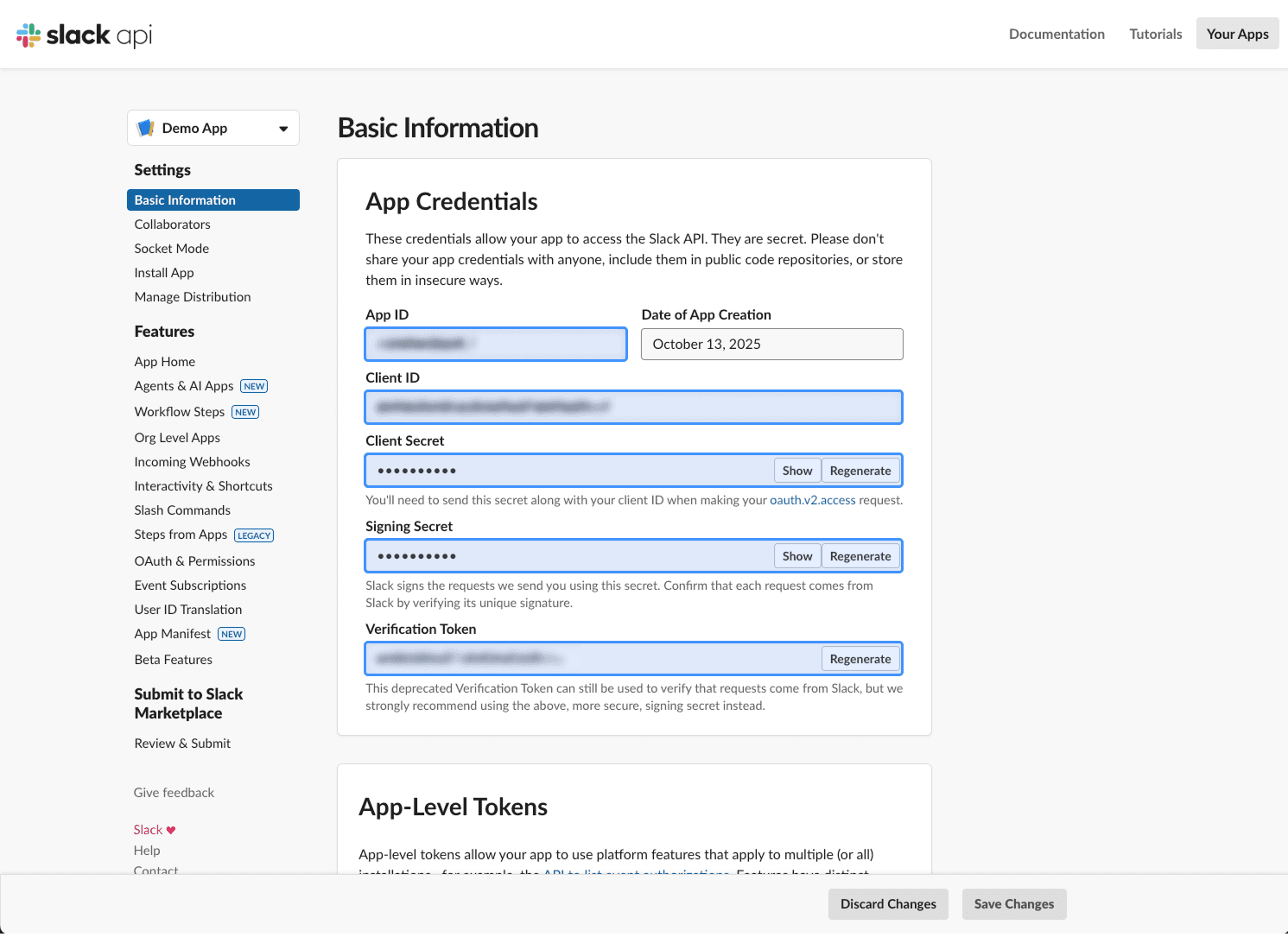 본 가이드를 따라 진행하면 필요한 정보를 발급하여 슬랙 크리덴셜을 등록할 수 있습니다.