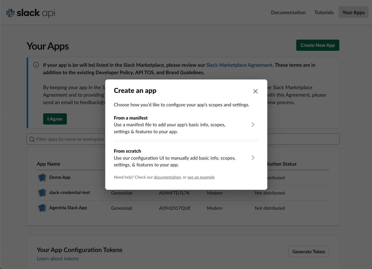 From scratch : 앱의 기본 정보나 범위, 설정을 수동으로 추가합니다.