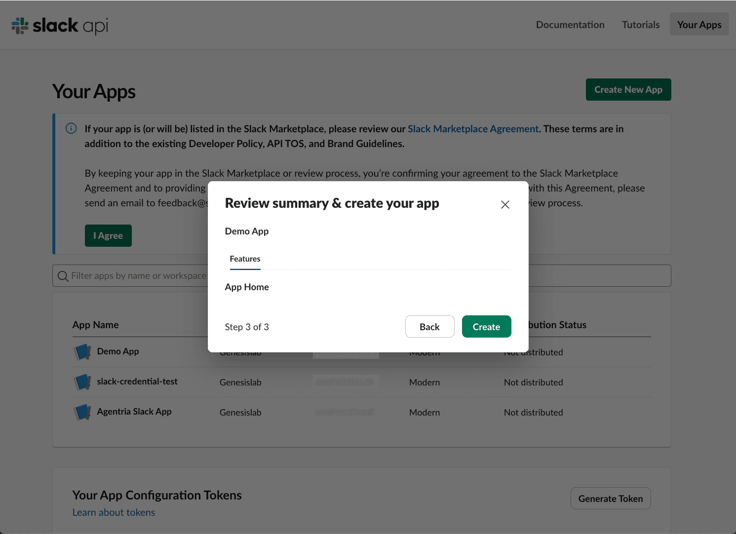 만들기(Create) 버튼을 클릭해 앱을 생성합니다.